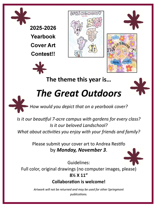 - Artwork will not be returned and may be used for other Springmont publications, as well as the back cover and interior pages of the Yearbook.