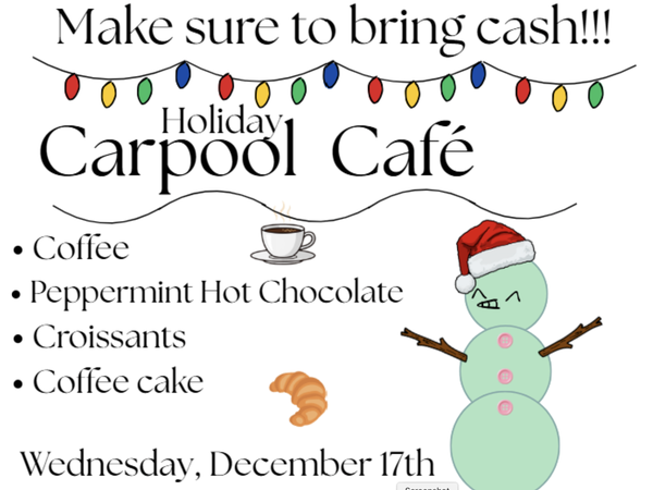 Mark your calendars for the Middle School's Holiday Carpool Cafe - Dec 17!